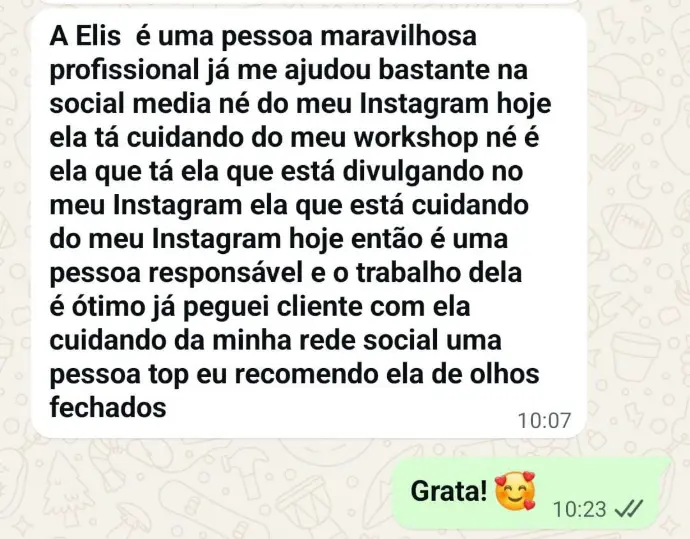 Hoje, entrego serviços de alta qualidade, valorizo cada detalhe e sou respeitada pelo que faço. Amo meu trabalho e a liberdade que ele me dá para viver momentos com minha família. Agora, estou aqui para ensinar você a conquistar o mesmo: crescimento, autovalorização e independência através de um serviço profissional e bem-feito.